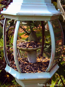 I painted this one also, and glued a little dish with a bird on light stem, that's it. That's all I did, just add birdseed, and the Birds love it!